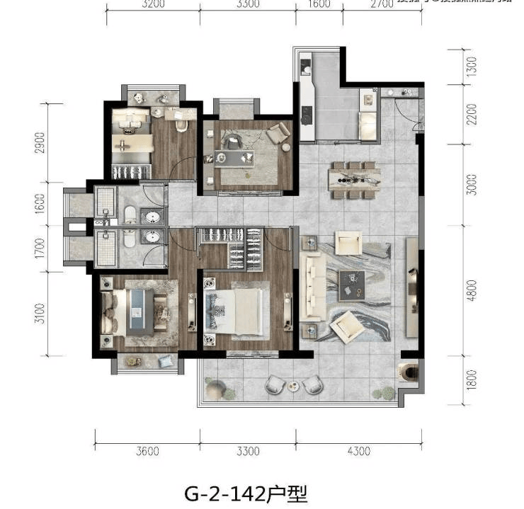 142㎡四房两厅一厨两卫:(毛坯、精装)