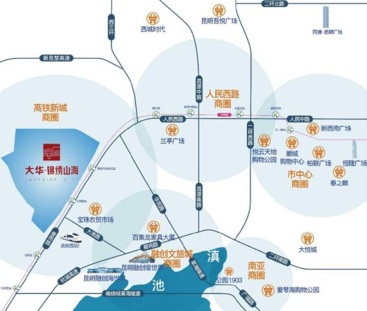 高铁:距离高铁西站仅约800米,规划2027年建成,届时将连通昆明南站;