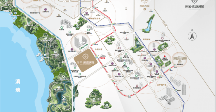 生态:项目周边生态资源优越,捞鱼河湿地公园、斗南湿地公园、滇池生态湿地公园、王官湿地公园、海东湿地公园等六大湿地公园环绕