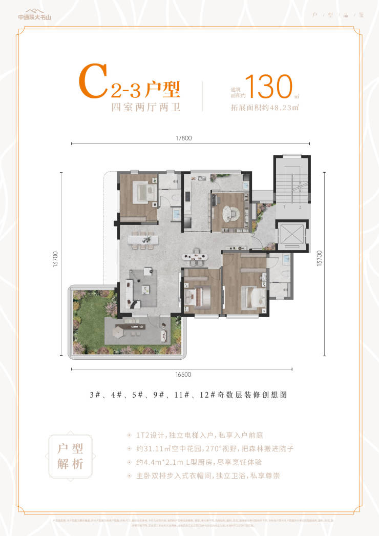 【梯户比】:1T2 1T3 2T4