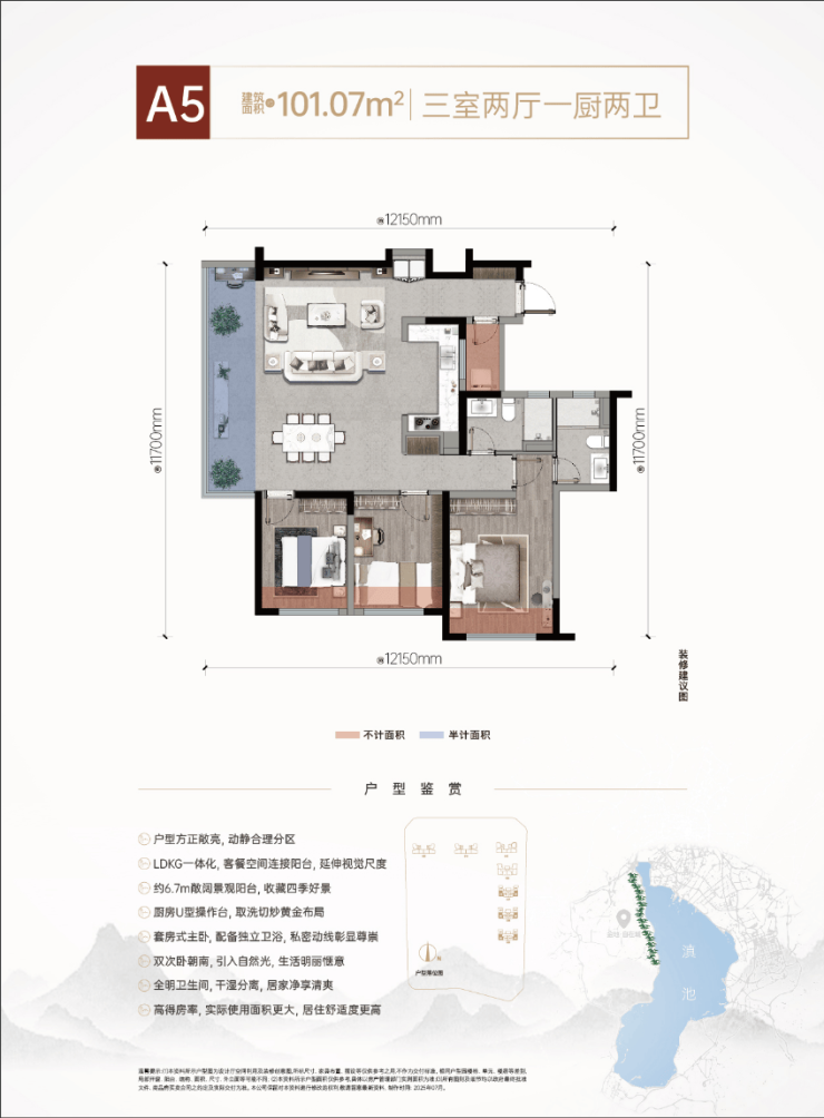 1、建筑面积86-100㎡精装瞰景高层/建筑面积115-135㎡精装板式洋房