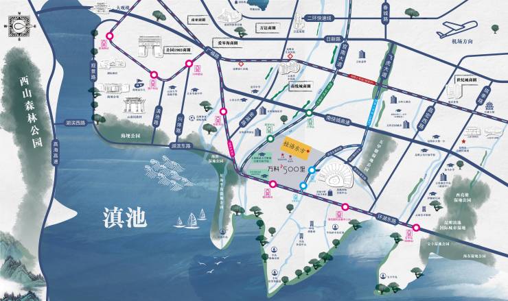 万科·500里|棠月东方择址滇池会展半岛区核心板块,处于滇池国际会展中心与滇池国家旅游度假区的双门户位置。