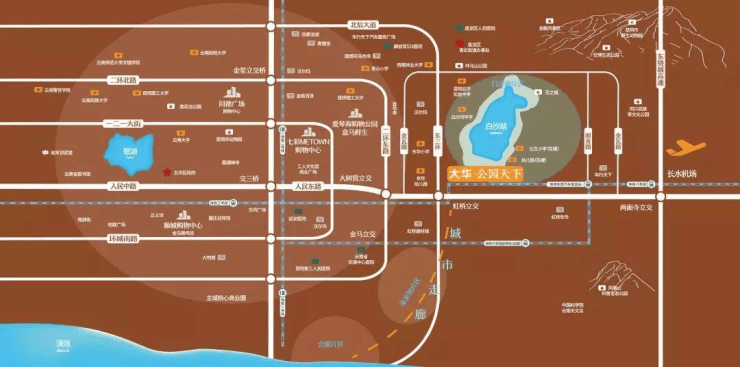 【公园配套】项目拥揽片区生态宜居之心 — 1600亩白沙湖,白沙湖水域面积约50公顷,环线长度约3.8公里,是昆明主城最后的可开发湖区。同时,沿湖多级公园打造,可享诗意白沙湖“一湖三公园”城央生态佳境,现阶段海河公园、南岸公园已建成,白沙湖公园建设中。