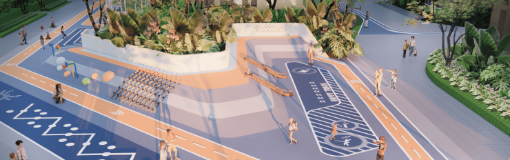 • 运动体系:600米健康跑道+健身器械区+社区体育场地,地面采用悦动铺装,周边种植大腹木棉、现代月季,运动同时享受花香与绿意。