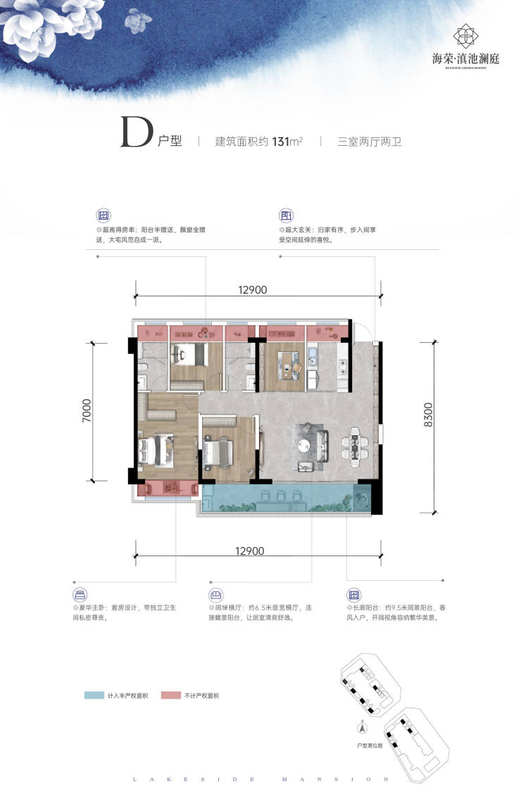 6栋:中户:111㎡;端户:131㎡