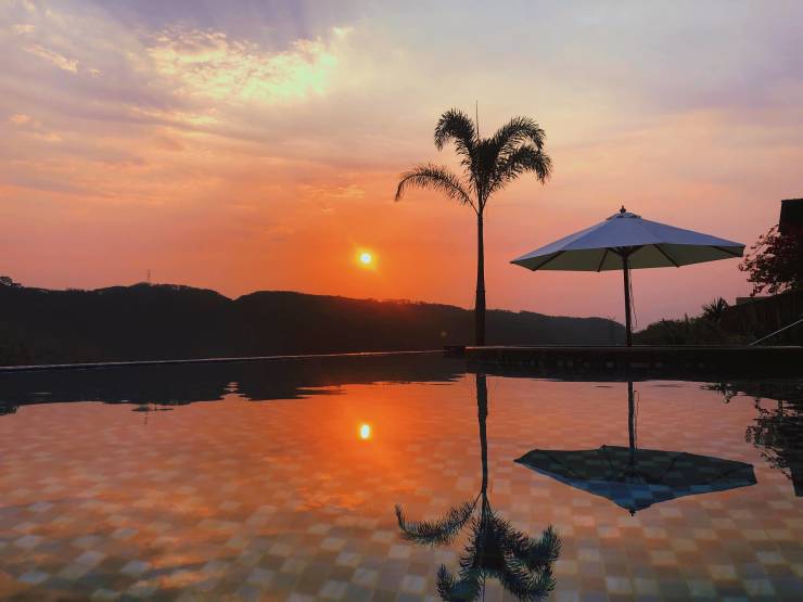 ?在阳光热烈的此地,享无边际天幕泳池;