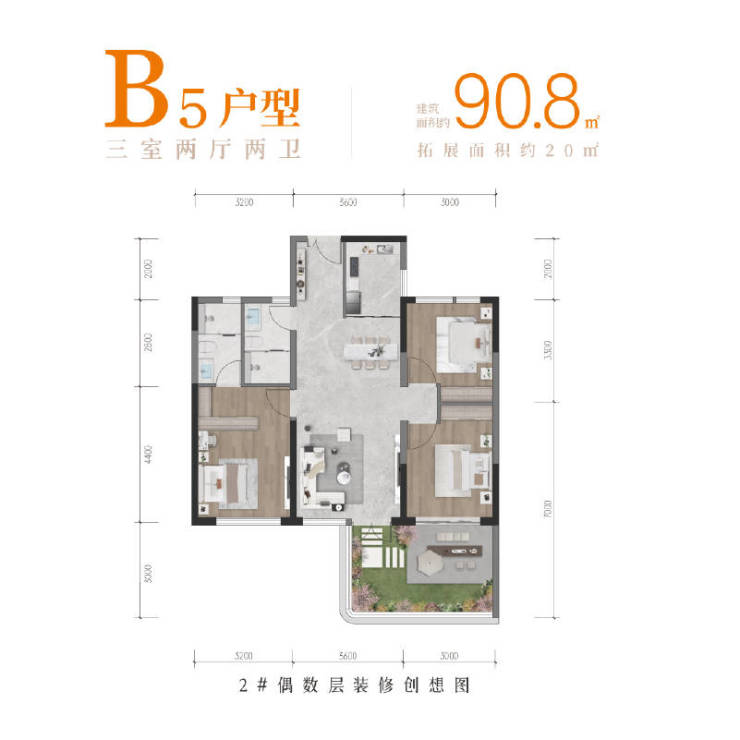 【梯户比】:1T2 1T3 2T4