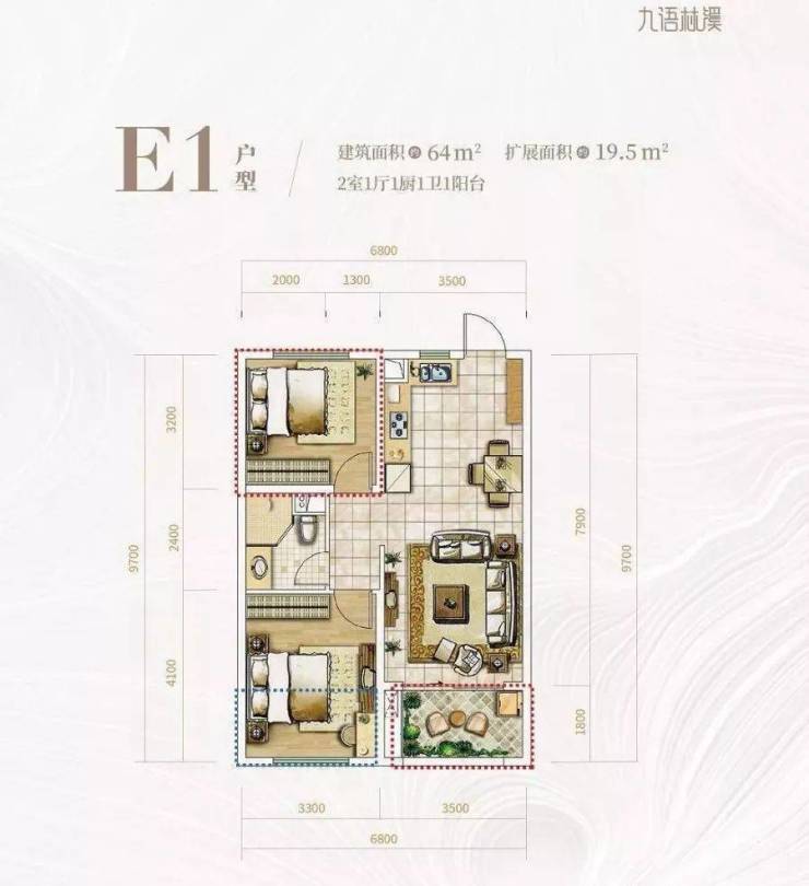 C1 C2 户型 l 4室2厅1厨3卫3庭院 建筑面积约:89.5㎡