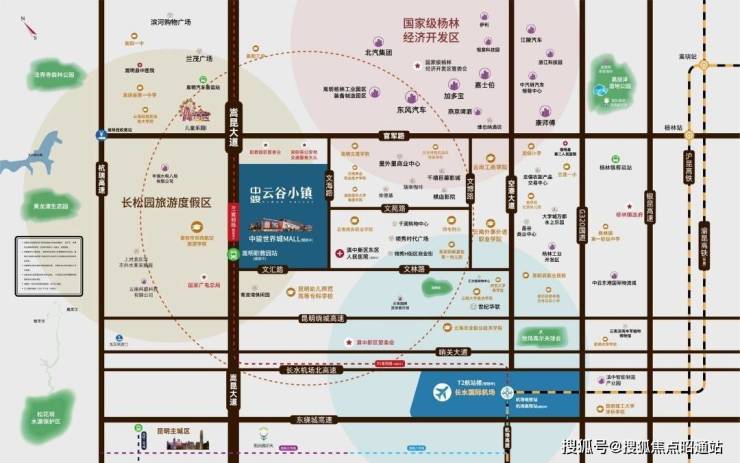 空港立体路网(机场高速/嵩昆高速/地铁6号线+规划9号线)自建3所幼儿园+1所小学(光合云谷学校)