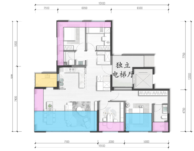 7.1M转角横厅,平均每天增加超2h阳光日照