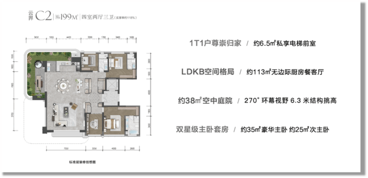 豪宅基因——约3.3容积率 全1T1电梯入户 南北向纯板式 3.05-3.15米层高