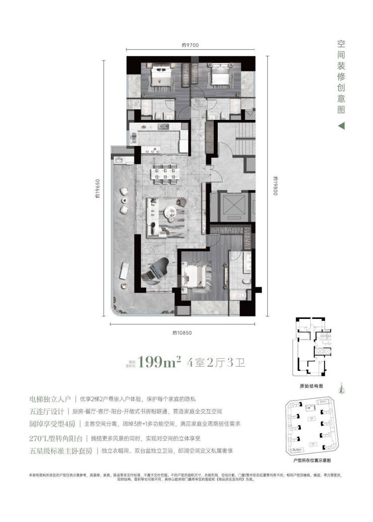 精装交付:158-199户型装标4500元/㎡,269㎡户型6000元/㎡