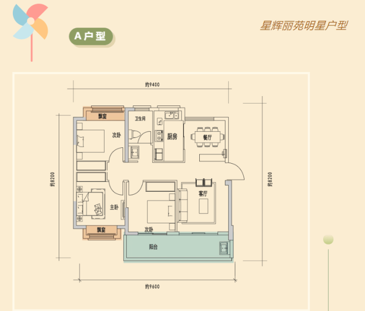 1、三面宽朝南设计:客厅、主卧、次卧均为南向,阳光充足;