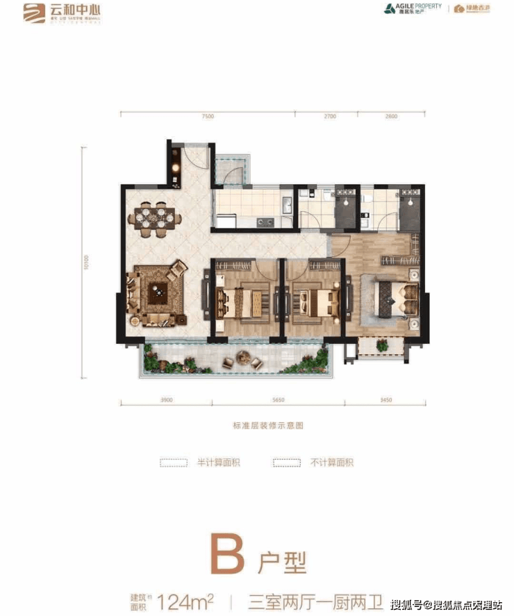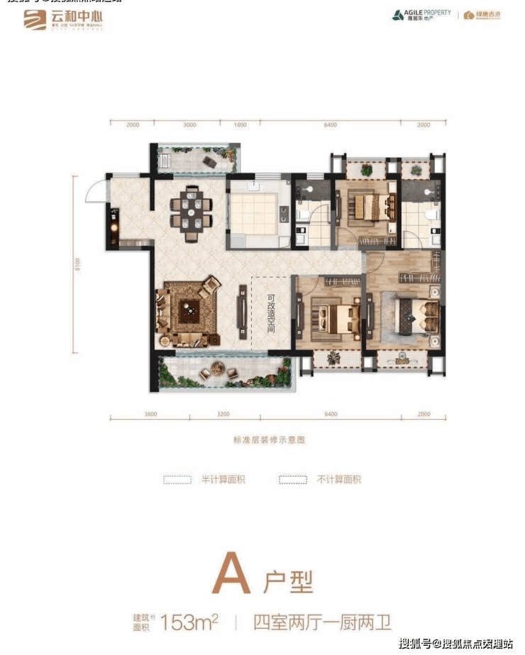 【9栋】精装,2T3,153㎡ 端户,124㎡ 中户(售罄)