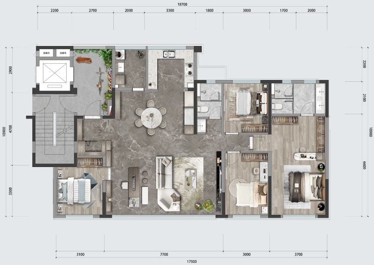 配置比肩甚至超越180㎡级别的大平层,且每个空间的尺寸也堪比大平层的尺度。