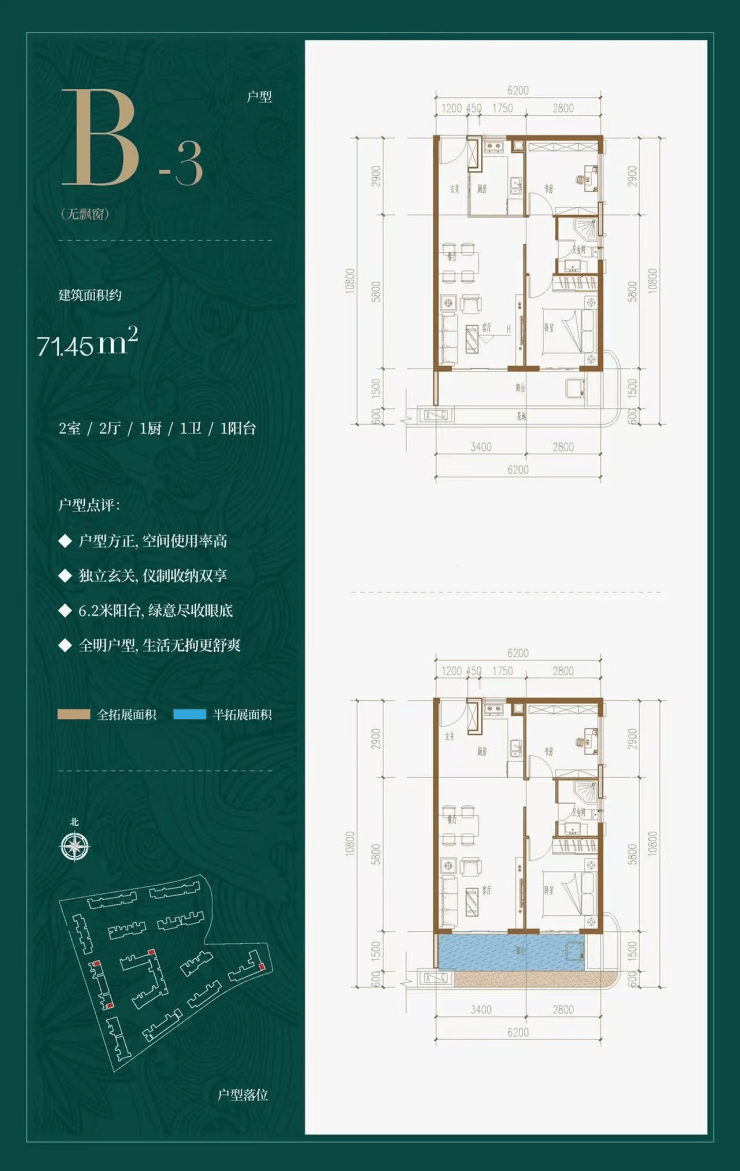 3、全明户型,双阳台设计,居住舒适度高。