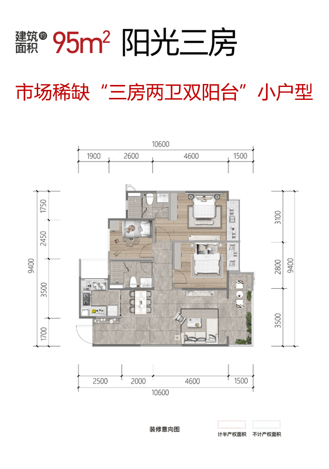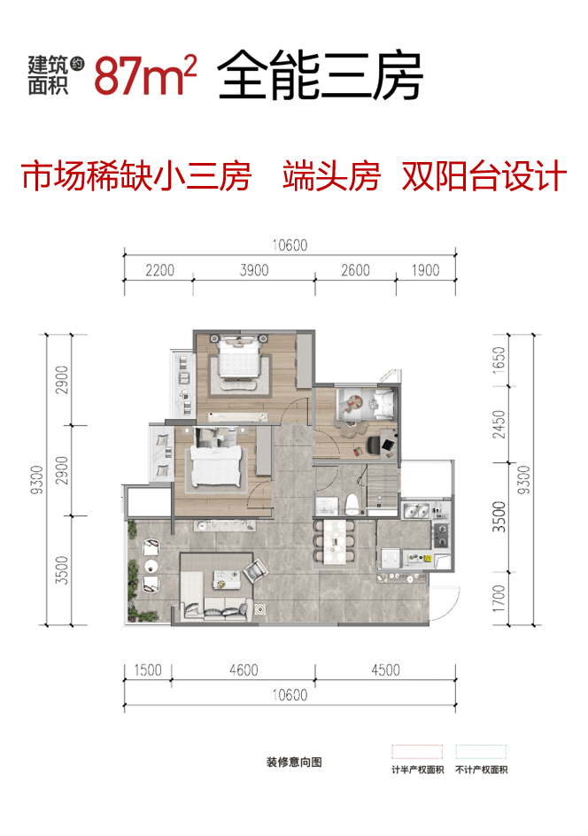 约87-95㎡精装全能小三房,片区唯一产品