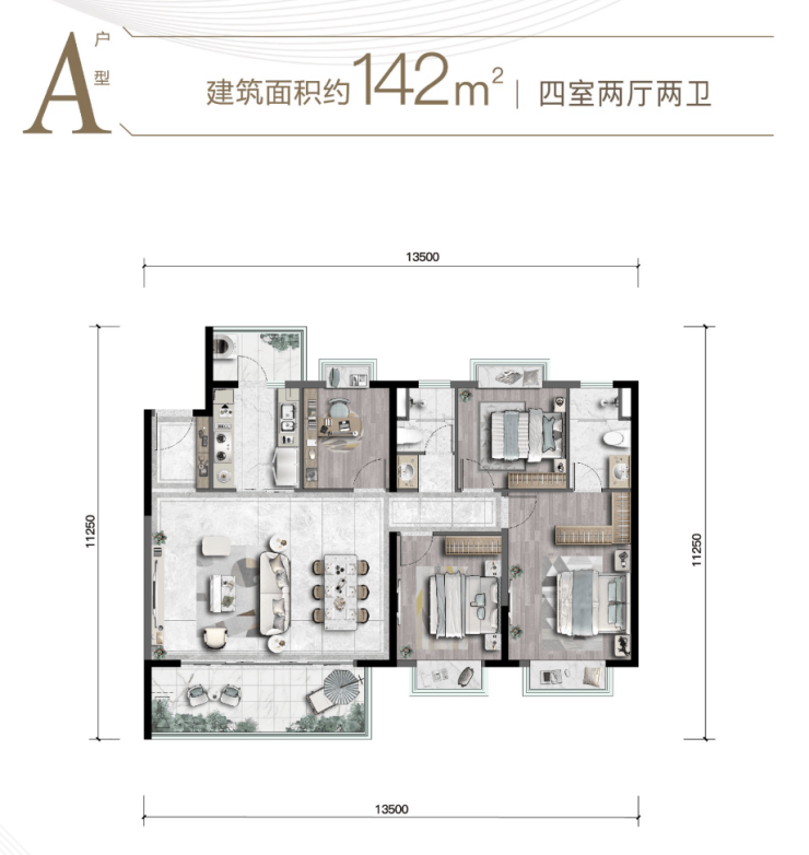 建面约117-143m²板式精装华宅