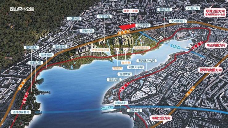 区域内风景名胜、古寺名园甚多,更有 90 余公里的滇池湖岸线和12平方公里的滇池草海水域。