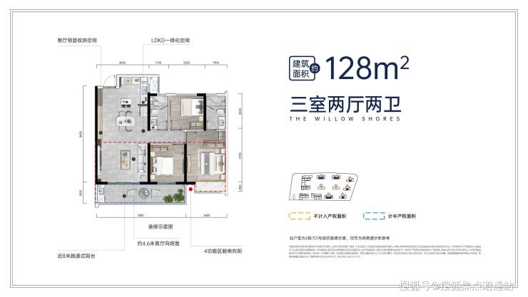 建面约128㎡明星大三房 约3米层高|约4.6米客厅面宽|约7.8米跑道式阳台