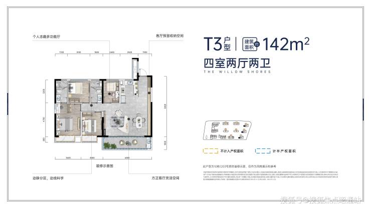 建面约142㎡(T3)全优南向奢阔四房 2T3户尊崇的私人领域|270°采光|宽幕横厅