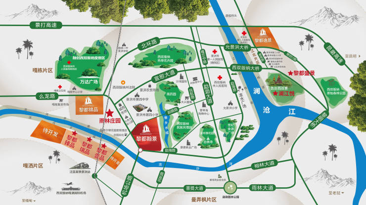 2021年入主西双版纳,四载精耕,相继开发澜江悦、雨林庄园、黎都盛景、黎都壹品、黎都瑞品、黎都臻品六大品质项目,首创“提前交房并交证”,屡创热销佳绩,成就版纳楼市标杆。