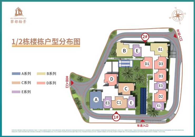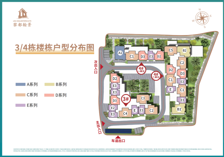 梯户比:1#-2梯6户,2#-3梯9户,3#-3梯11户,4#1单元-2梯5户,4#2单元-4梯11户。