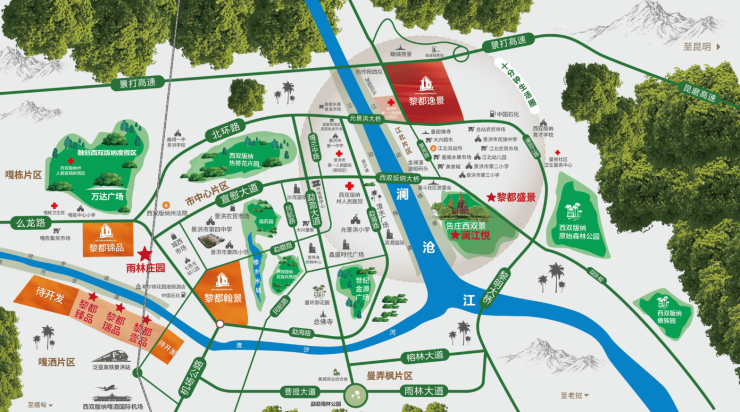 黎都逸景项目落子澜沧江畔,位于城市心脏之处,繁华主脉络,占据核心地段,项目紧邻景打高速入口及景亮北路两大城市及城际主干线,周边路网环伺,出行便捷高效,轻松串联城市万象于城市;