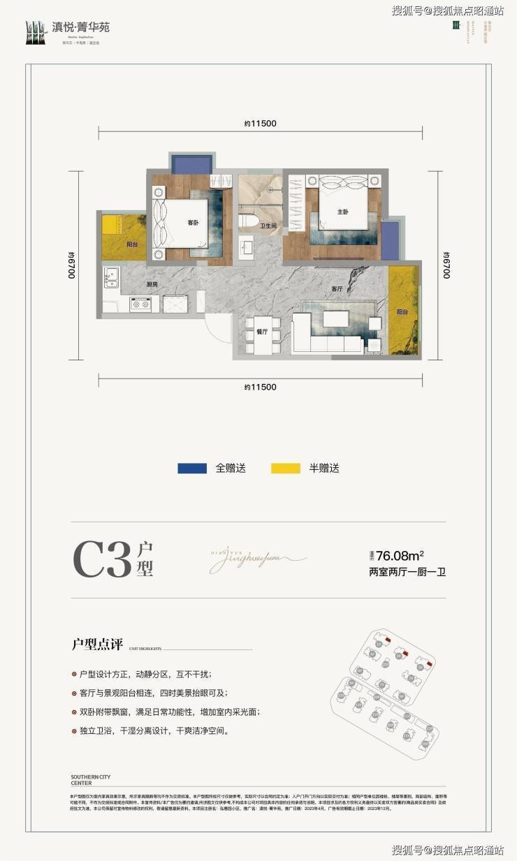 3、低总价小户型:76平两房,89平三房户型,总价72万——99万;