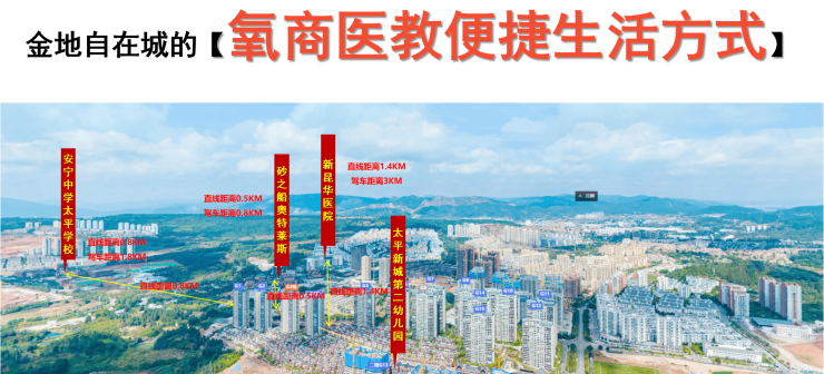 休闲:驱车半小时内,即可达光崀文艺村、玉龙湾公园、青鱼湾水上乐园、蝴蝶谷小人国以及安宁地热温泉群、西山、滇池大坝等昆明重点风景区,给您和家人的周末休闲带去众多的选择。