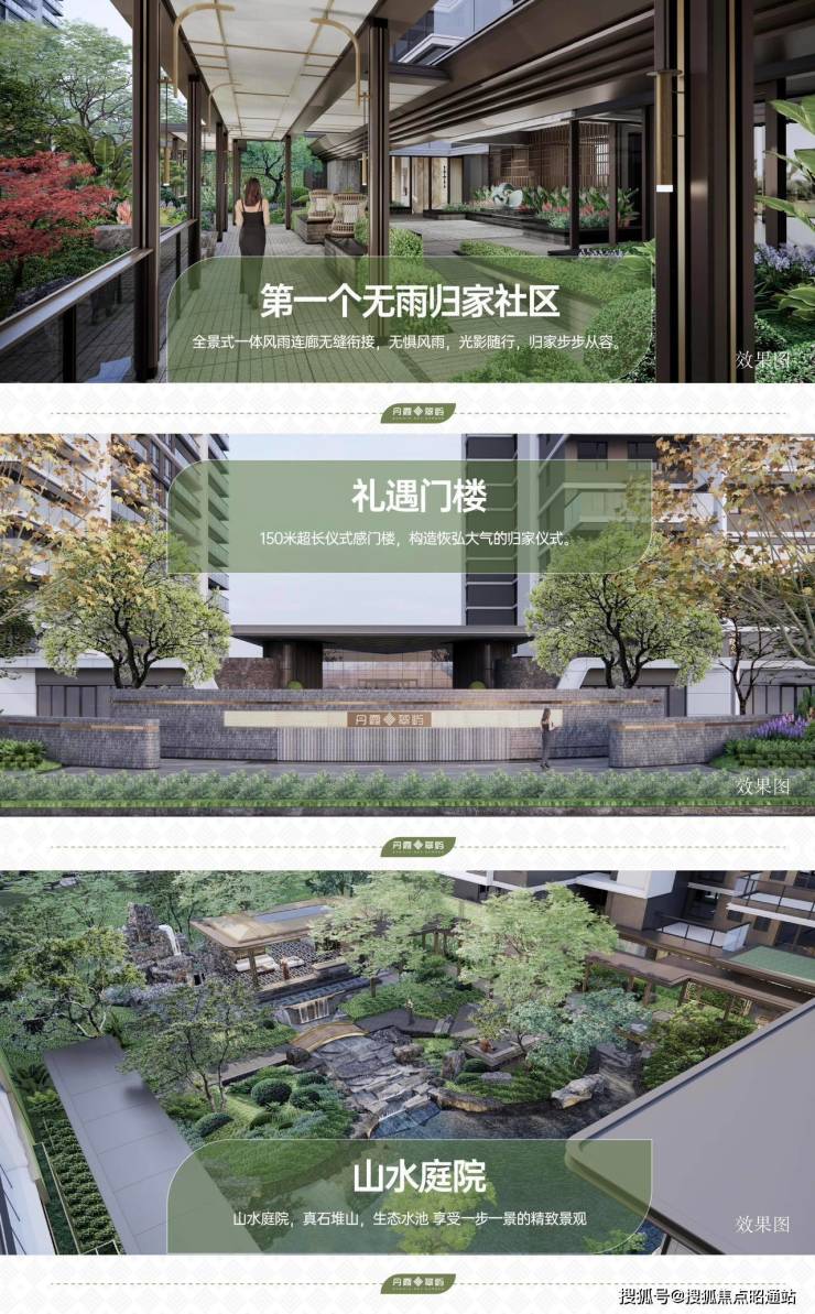 全景式一体风雨连廊无缝衔接,无惧风雨,光影随行,归家步步从容。