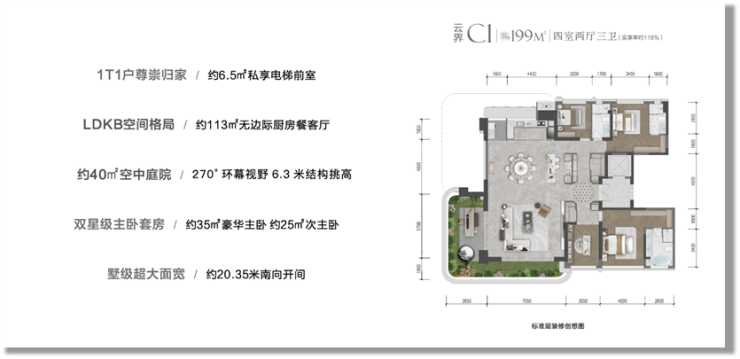建面约143-199㎡第四代浮岛大平层