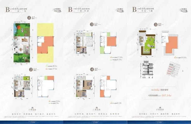 在售户型:143㎡-160㎡联排、55-131㎡洋房