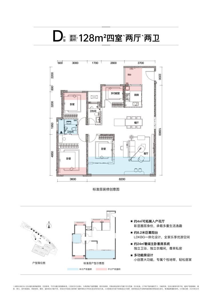 T4——128㎡南北向舒适型四房,使用率约99.56%