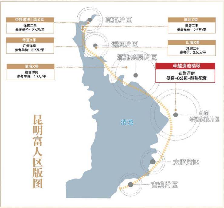 滇海沿线在售洋房楼盘仅华夏四季、滇海壹号、卓越滇池晴翠;