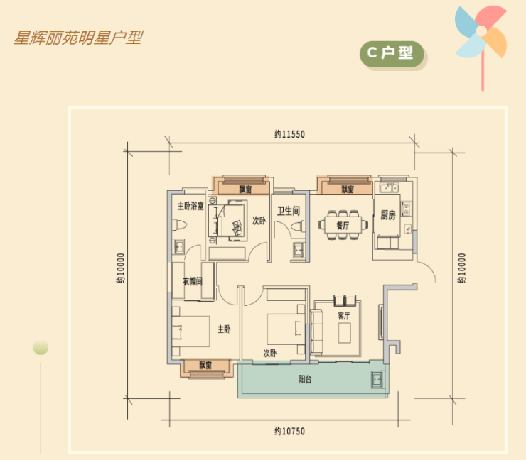 1、三面宽朝南设计:客厅、主卧、次卧均为南向,阳光充足;