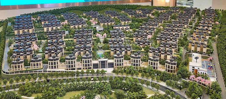 新中式园林风格,融入现代艺术元素,跌水+雕塑+景园(澜园、石园、梅园、弈园、苔园)一方青山,一池碧水,打造“沉浸式”园林设计。
