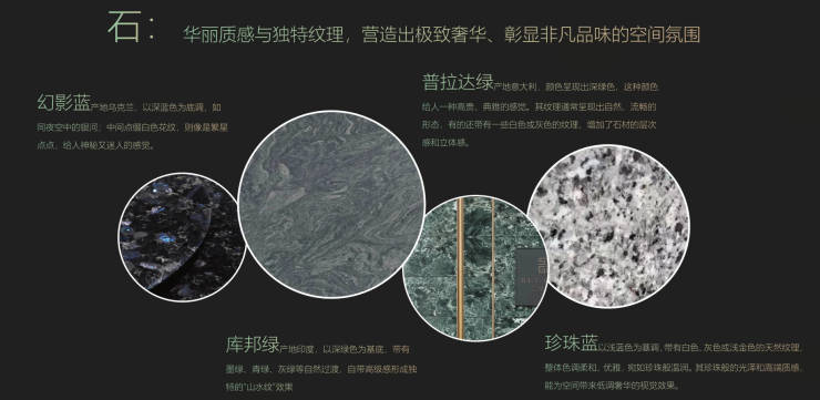 景观装饰融合印度库邦绿、珍珠蓝等奢石