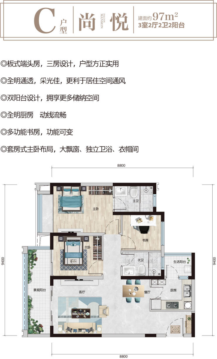 南北通透 板式华宅