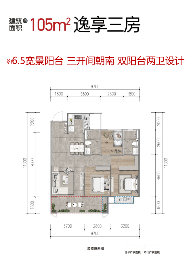 约87-95㎡精装全能小三房,片区唯一产品