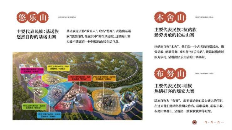 ☑ 百寨:以六大山地形态为载体,营造“一山多寨,百寨相连”的大型民族融合场景,形成“山水成寨、山水成市、寨中有市、市在寨中”的寨群画卷。