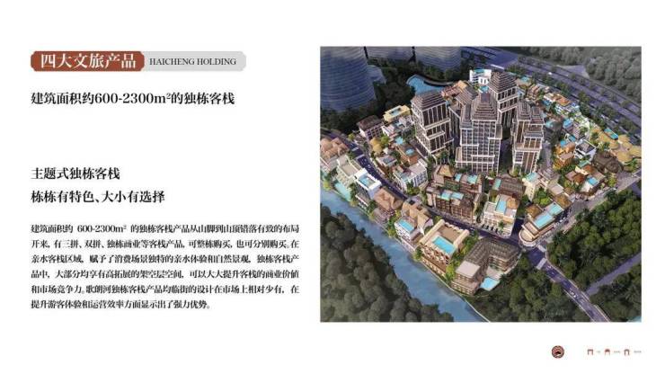 【总户数】63栋(5栋高层酒店、54栋客栈、4栋商业,1420间客房)