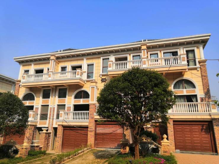 地块开发建设有52栋、196套法式主题别墅,由176套联排和20套双拼产品组成;联排产品以四联排为主,地下1层地上3层,带有前后花园和车库,四联排主力户型面积229、249㎡;双拼户型面积291㎡。产品除了前后花园外,带有电梯入户,同样是地下1层地上3层的结构。