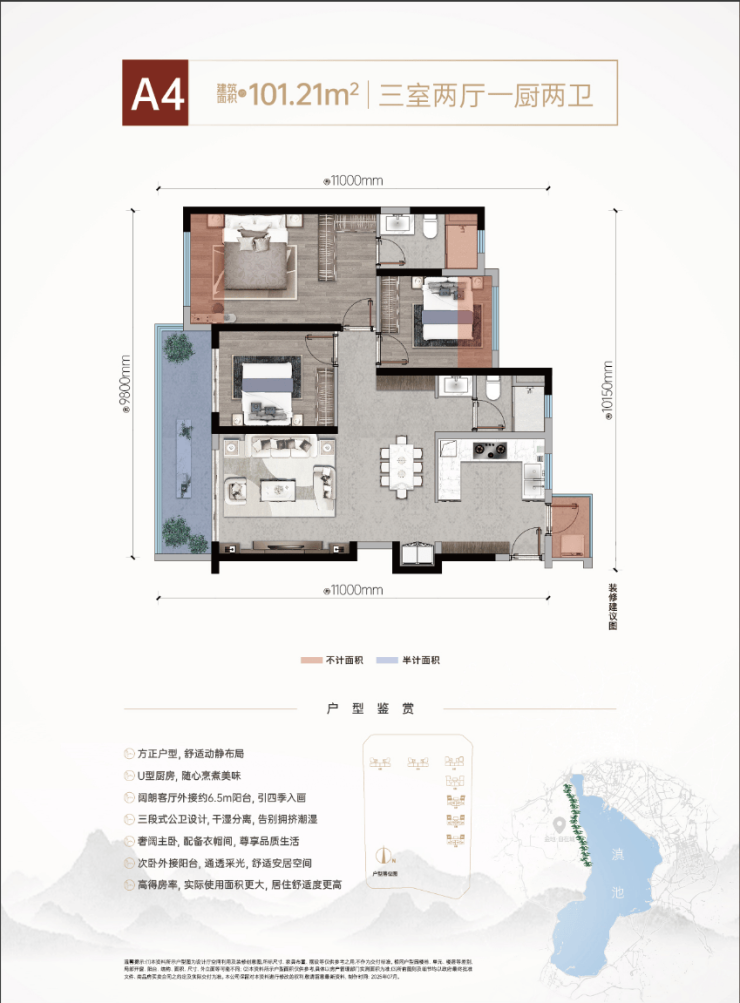 1、建筑面积86-100㎡精装瞰景高层/建筑面积115-135㎡精装板式洋房