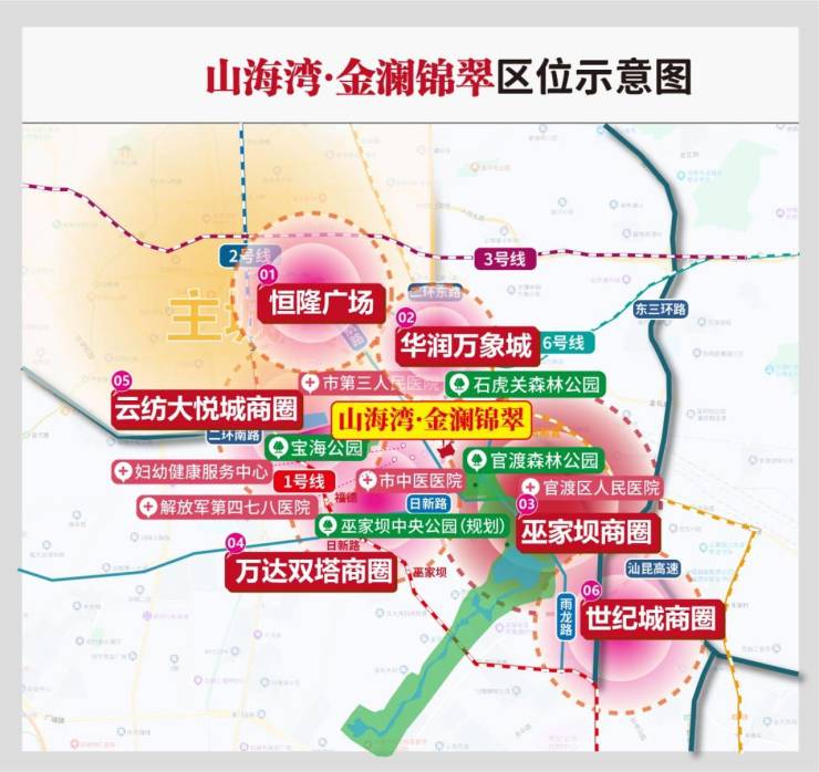 »»『商业配套』:华润万象城(6分钟)、恒隆广场(10分钟)、万达广场(15分钟) 、大悦城(15分钟)、巫家坝龙湖天街(10分钟)、世纪城商圈(10分钟),项目自 有城市商业综合体——融城金阶,社区自有特色商业街区。