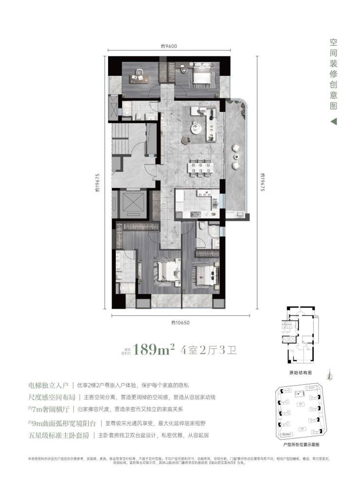 精装交付:158-199户型装标4500元/㎡,269㎡户型6000元/㎡