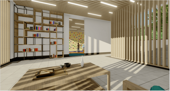 7、架空层打造全零段社区邻里空间(6#、7#、12#号楼),包含休闲会客厅、儿童天地、儿童阅读区、健身区、棋牌室等;